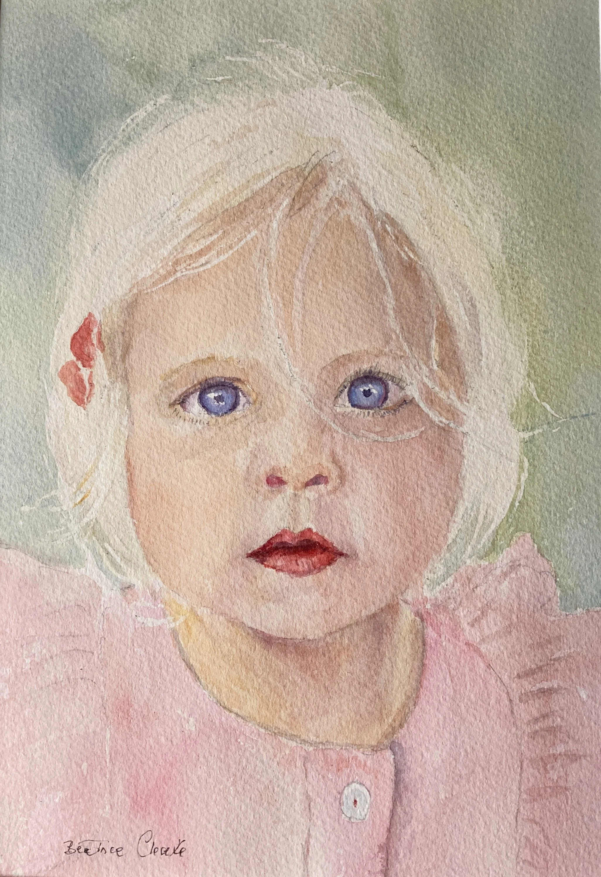 I had the great pleasure to paint this beautiful toddler. It is a pure watercolour.