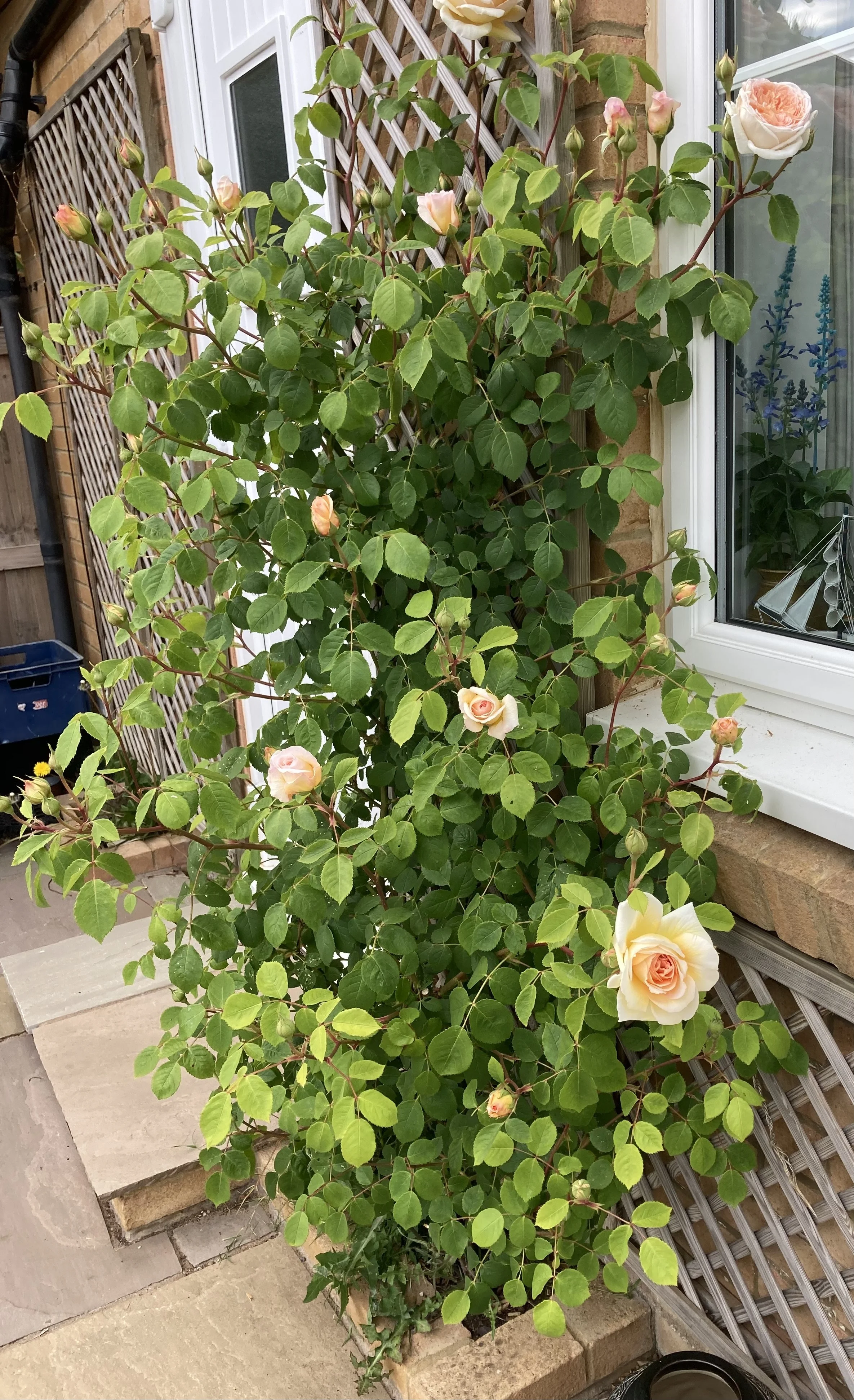 A beautiful climber planted about 3 years ago. Absolutely delightful. I have been searching for its name. It must be in my references!!! As soon as I find it I will add it for information